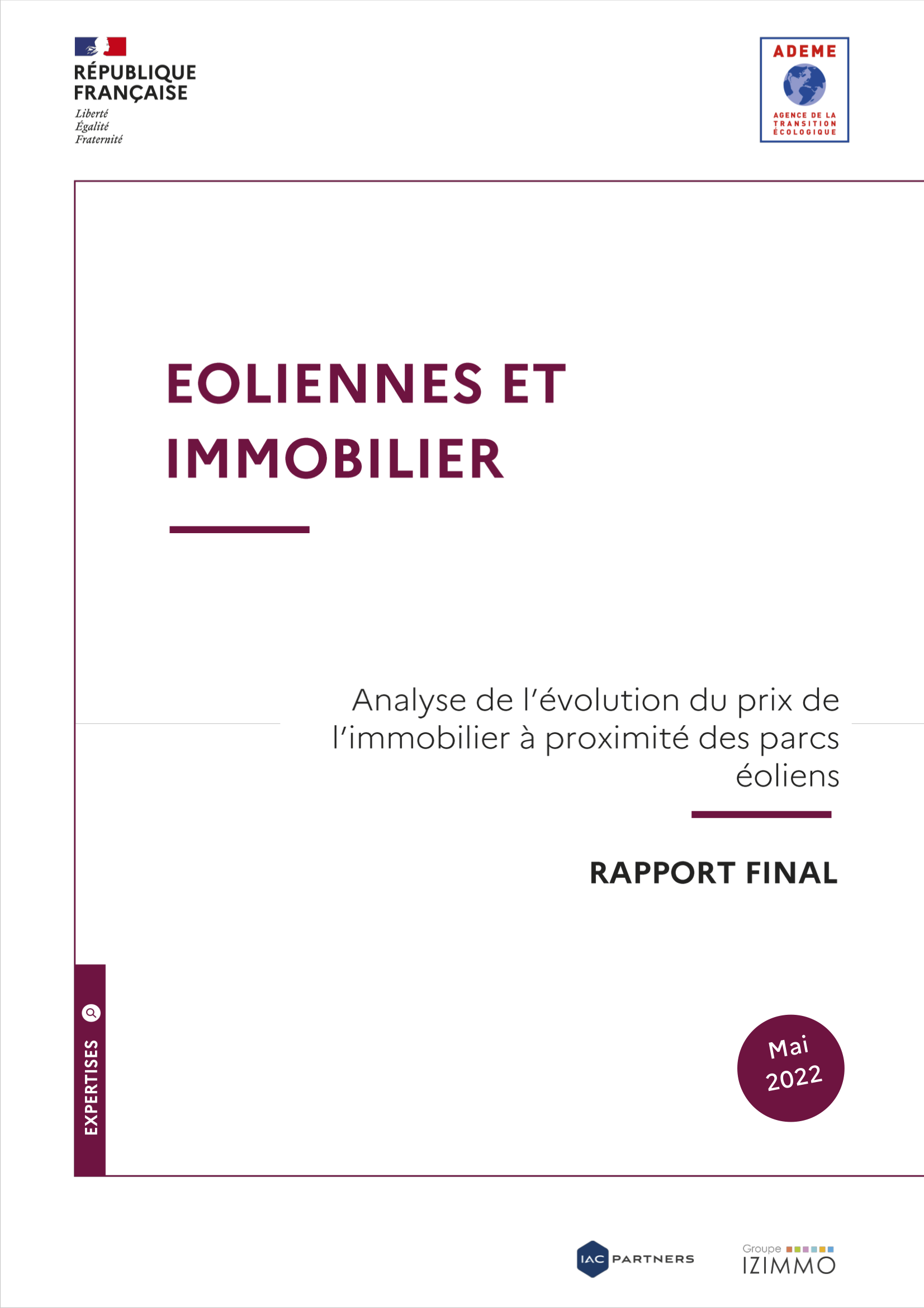 La question de l'évolution du prix de l'immobilier à proximité des parcs éoliens terrestres se pose de plus en plus à mesure que l'énergie éolienne se développe. Or faute d'étude spécifique en France, les acteurs se réfèrent à des analyses internationales ou à des expertises individuelles potentiellement biaisées ou inadaptées. L'objectif de cette étude est de produire une analyse de référence exploitable et robuste vis-à-vis des spécificités territoriales en France métropolitaine. Afin de couvrir au mieux le sujet, l'étude inclut un volet quantitatif pour produire des résultats mesurables et reproductibles sur la base de données à la fois fiables et partagées ainsi qu'un volet qualitatif pour mettre en perspective les résultats du volet quantitatif et pour en identifier les limites.