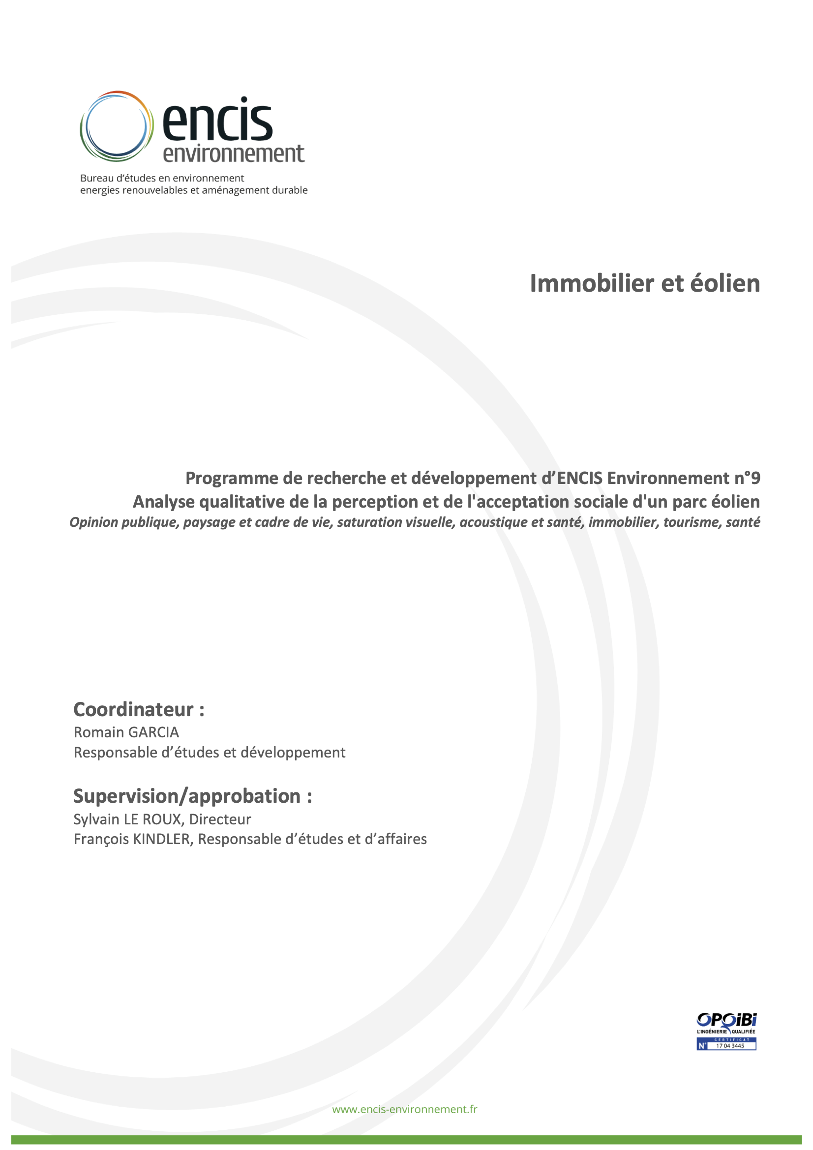 Analyse qualitative de la perception et de l'acceptation sociale d'un parc éolien - Opinion publique, paysage et cadre de vie, saturation visuelle, acoustique et santé, immobilier, tourisme, santé